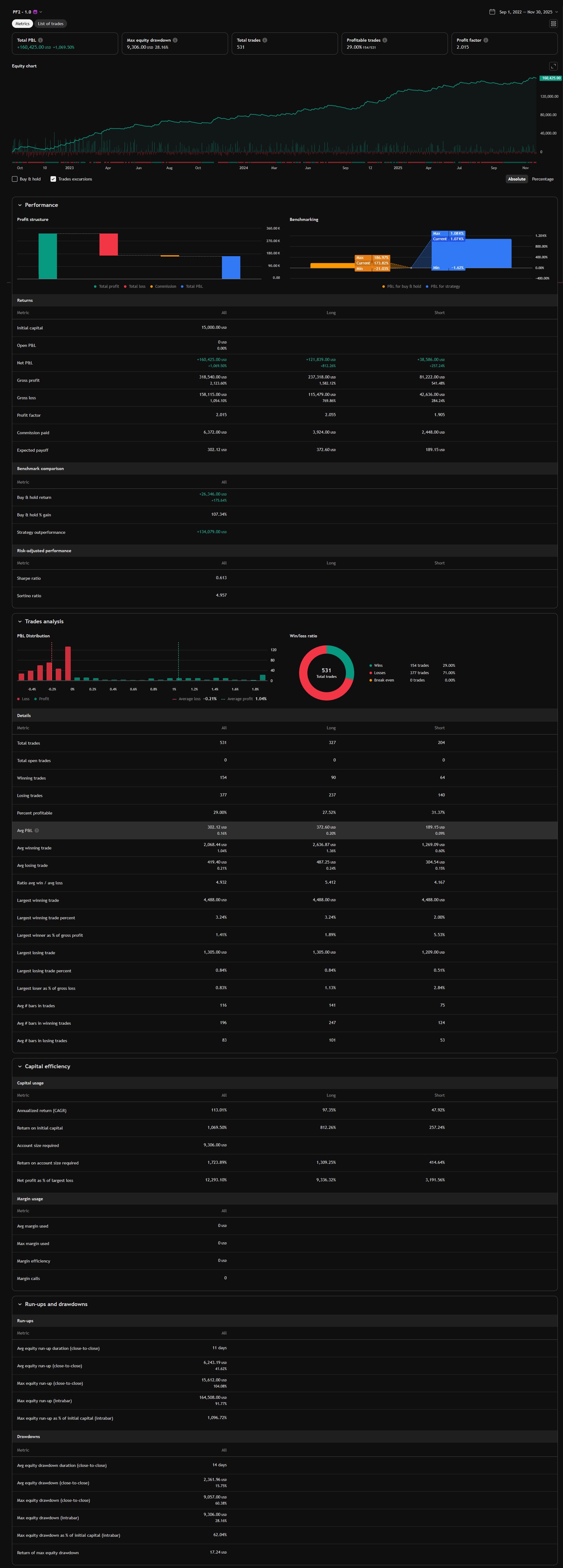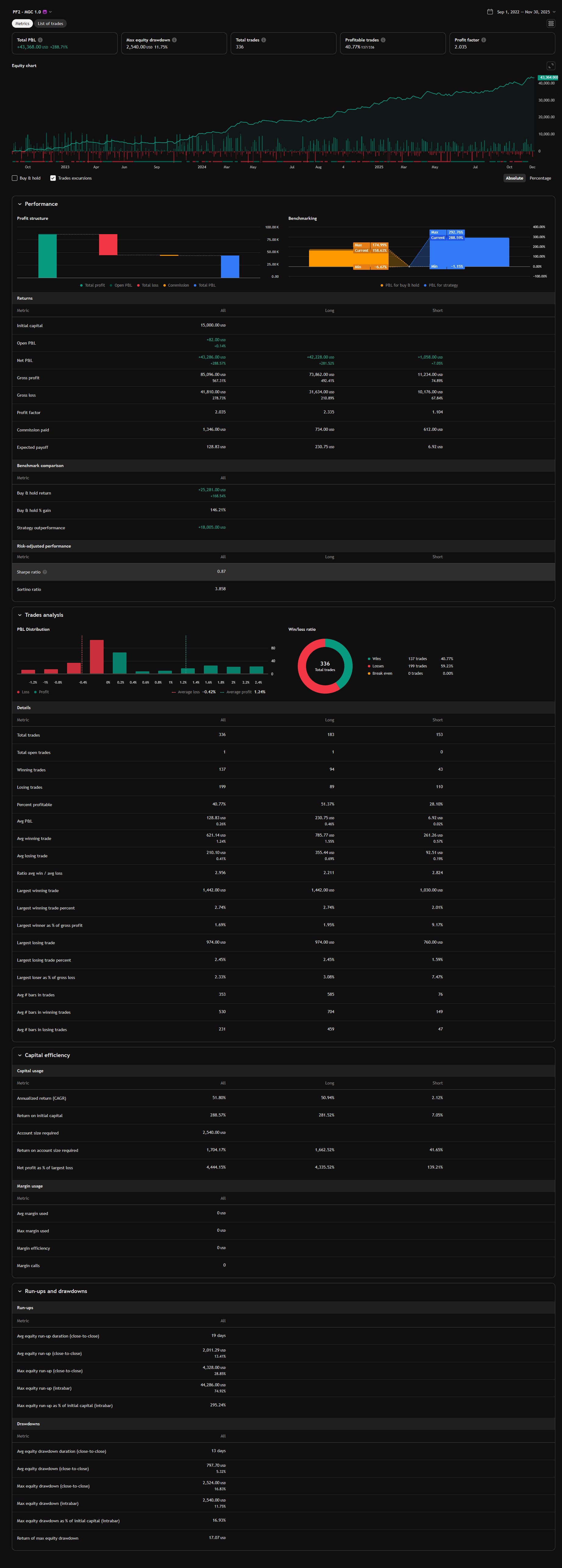 PF2 is a rules-based futures strategy designed around risk-reward asymmetry, not win rate. It accepts frequent small losses in exchange for fewer, larger gains. Performance should be evaluated across trade sequences, not individual trades.