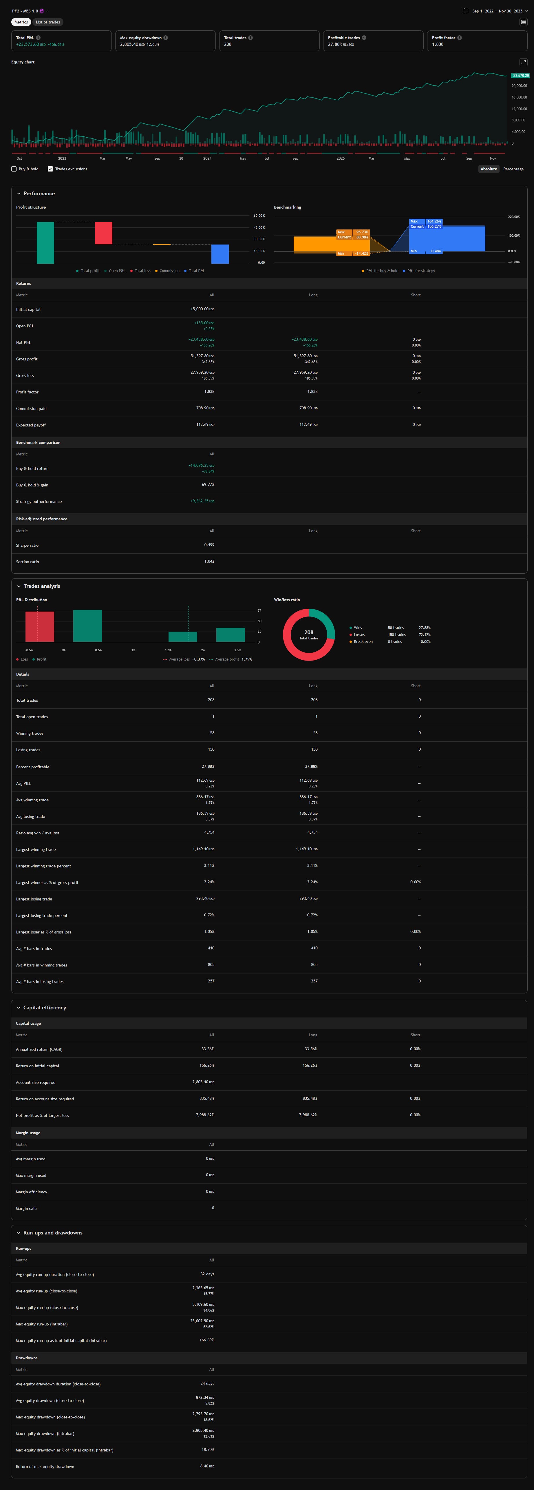 The results shown here reflect historical testing using fixed position sizing and realistic execution assumptions. All figures are presented for transparency and should be interpreted collectively rather than in isolation.
