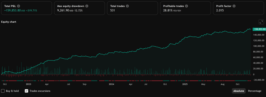 We're confident that the PF2 is built on a profitable foundation. Unlike most automated trading bots, which only provide 6-12 months of past performance data, the PF2's performance data stretches back 39 months - from September 2022 to November 2025.